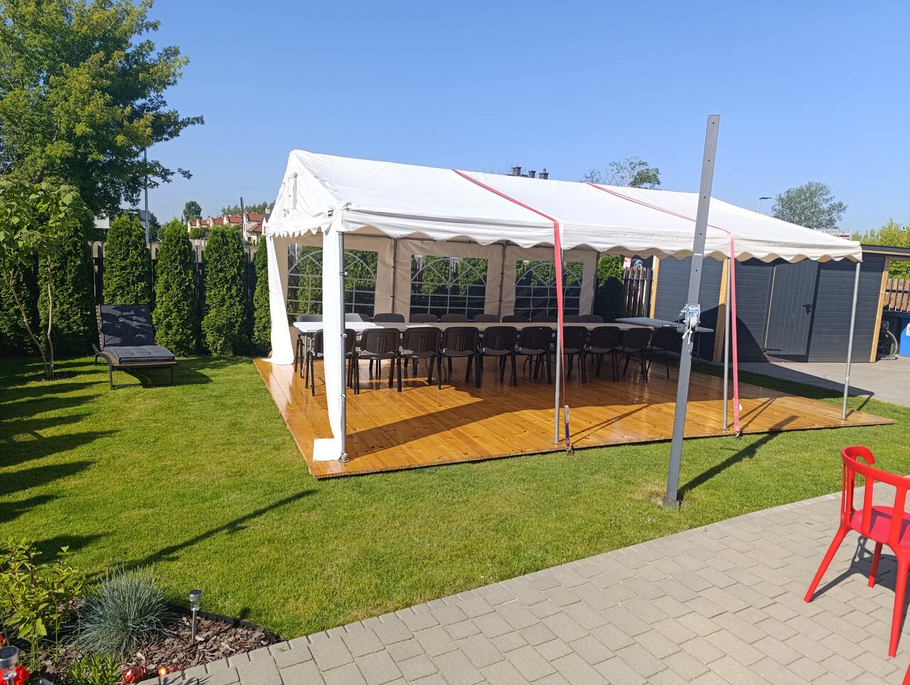 Dbamy o wygodę i estetykę – dlatego oprócz namiotów oferujemy również krzesła, stoły, oświetlenie, grille, warniki, sztuczną trawę, agregaty prądotwórcze, obrusy, zestawy piwne, pokrowce na krzesła oraz drewnianą podłogę.
